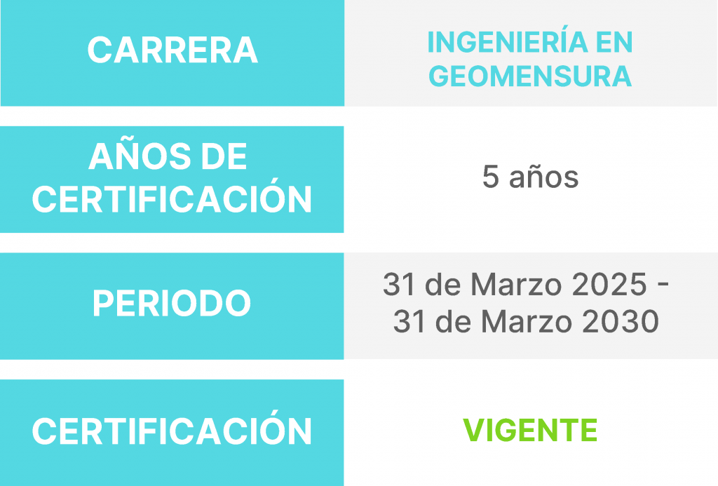 INGENIERÍA EN GEOMENSURA | 5 años | 31 de Marzo 2025 - 31 de Marzo 2030 | VIGENTE |
