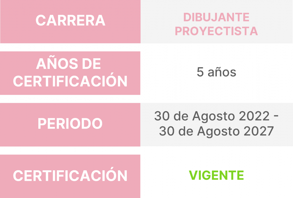 DIBUJANTE PROYECTISTA | 5 años | 30 de Agosto 2022 - | VIGENTE |