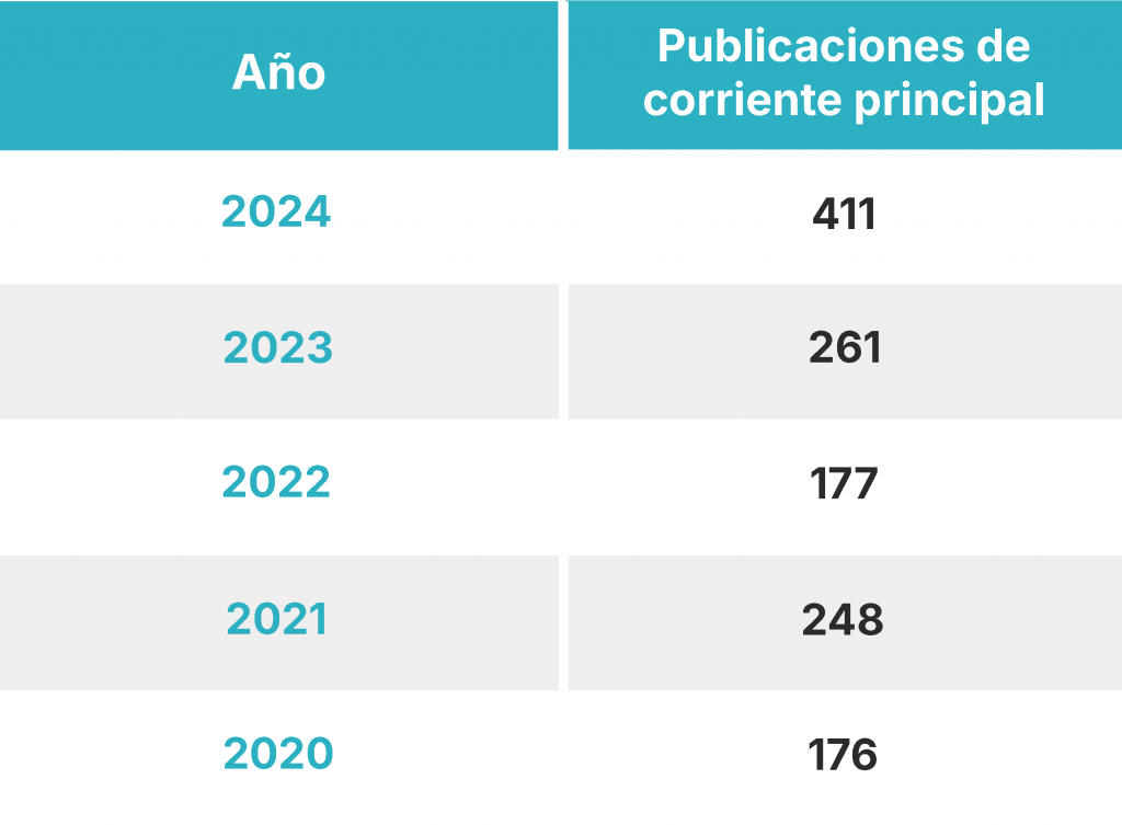 Año | Publicaciones de corriente principal |